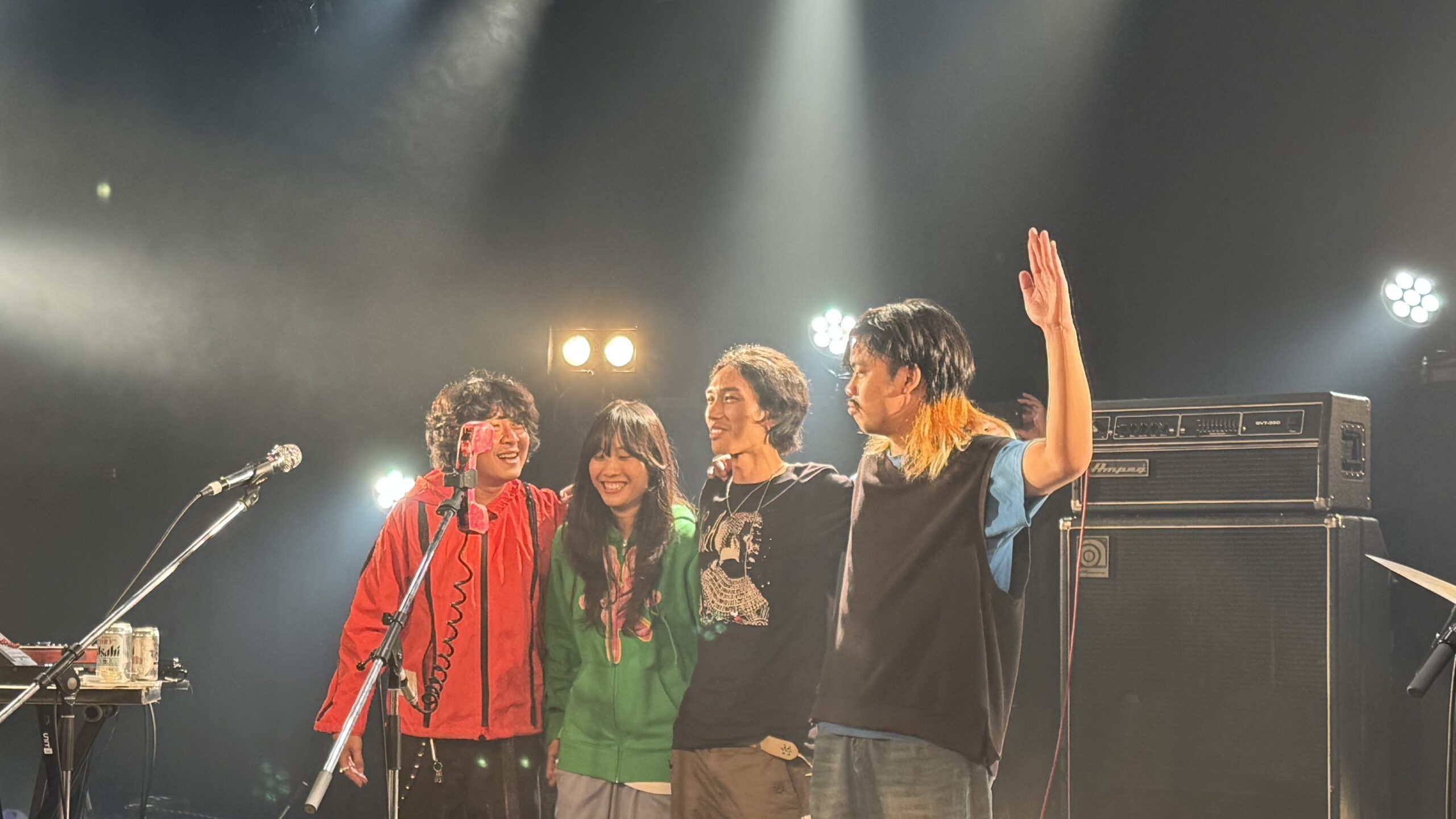 ボーカルの玉置さんが、YONLAPAからもらったという謎のフルーツを片手に現れた。それをアンプの上に置き、颯爽と"井戸育ち"のリフが始まった。ああオルタナだ、と思う。気持ちいいなあ。学生に戻っちゃいそう。